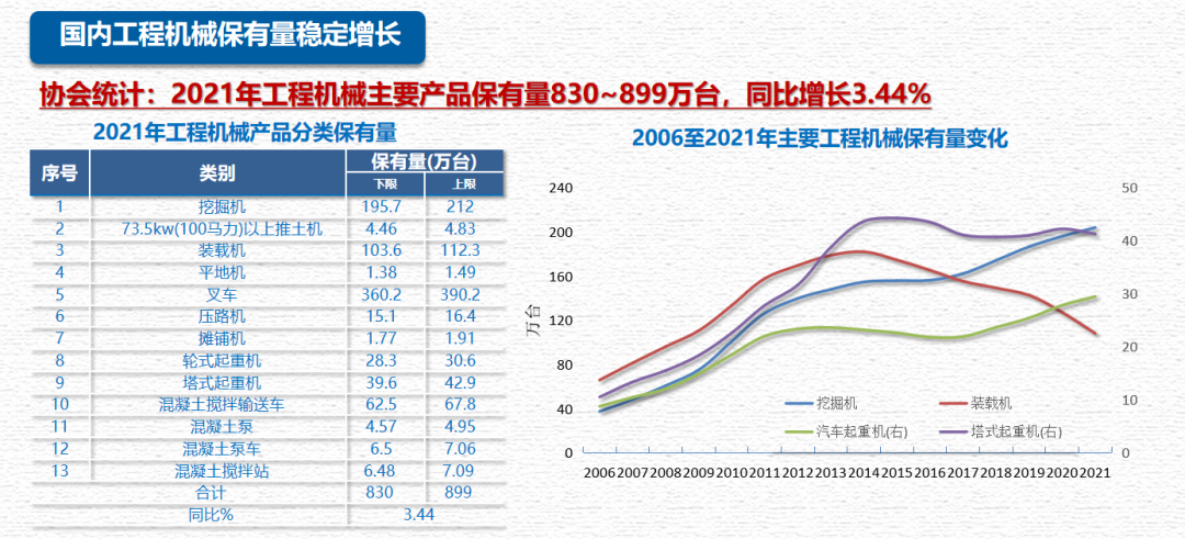 到2021年工程器械主要產(chǎn)品保有量已經(jīng)接近了830-899萬(wàn)臺(tái),同比增長(zhǎng)了3.44%。