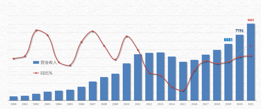 據(jù) 2021年年報(bào)統(tǒng)計(jì),全行業(yè)實(shí)現(xiàn)營(yíng)業(yè)收入9065億元,同比增長(zhǎng)了17%。根據(jù)重點(diǎn)企業(yè)的統(tǒng)計(jì),重點(diǎn)企業(yè)的年報(bào)總共350家左右,營(yíng)業(yè)收入5738億元,較于2020年增長(zhǎng)了18.3%。