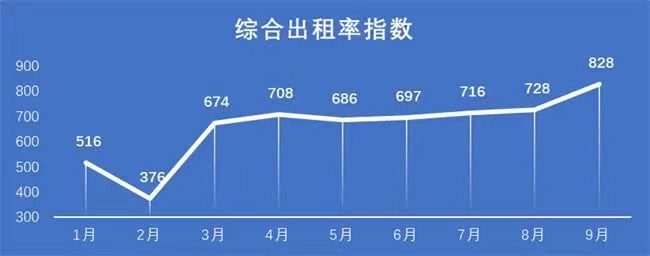 2022年9月高空作業(yè)平臺出租率呈現(xiàn)普漲趨勢,環(huán)比增長最大的是曲臂14-16m上漲23.4%,主流機型直臂20-24m環(huán)比增長近15%。直臂40m以上的機型環(huán)比增長14.3%。由于臂車出租率增速較快,對當(dāng)月整體出租率的拉動效果顯著,因此綜合出租率指數(shù)環(huán)比上漲約10%。(出租率是以臺天數(shù)為基準進行計算,100%出租率對應(yīng)1000點。) 2022年1-9月高空作業(yè)平臺租賃行業(yè)出租率指數(shù)